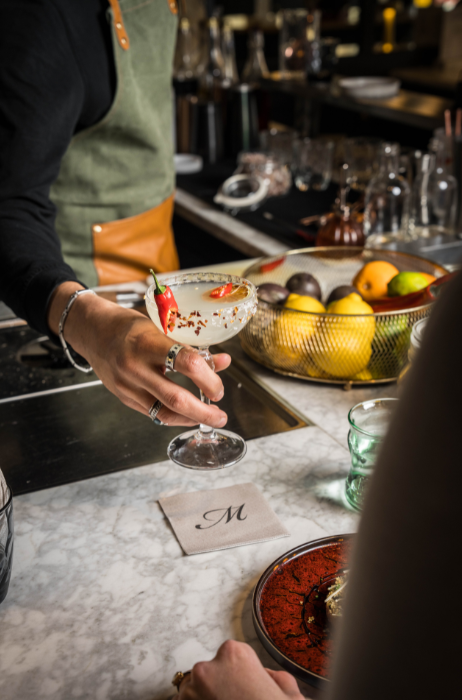 Daarom is besloten het op te delen in drie sfeervolle ruimtes: de gast kan in het bargedeelte een cocktail of glas wijn drinken met wat bar bites zoals sardines op toast, oesters en yakitori