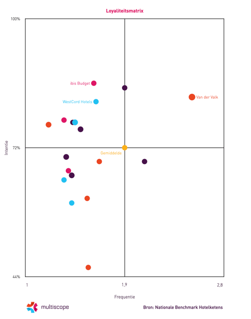 Acht hotelketens scoren lager dan gemiddeld op frequentie maar hoger dan gemiddeld op