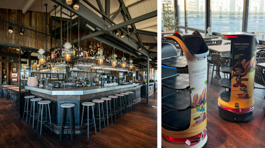 Bij Prince George rijden twee AI-gestuurde robots rond om vieze borden naar de spoelkeuken te brengen en gasten te placeren. “Superhandig op zomerse dagen, dan zit het hier bomvol. Bovendien zijn de robots nooit ziek en kunnen ze meer sjouwen dan de medewerkers. Maar het is ook een leuke gimmick, ze kunnen bijvoorbeeld op bescheiden niveau communiceren. Heel grappig - gasten zijn dolenthousiast.”