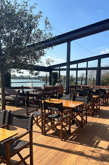 Steeds meer horecaondernemers kiezen voor een jaarrond terras. De investering is fors, maar betaalt zich later zeker uit. Ook horecaondernemers Judith en Barry Zwinkels investeerden onlangs 3,5 ton in het jaarrond terras van hun zaak Wollebrand Lakehouse. Er kwam een water- en winddichte overkapping en een functionele nieuwe vloer van bamboe.