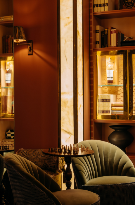 Wat Chapter 1896 nog specialer maakt, is de exclusieve Macallan-collectie die het hotel bezit. “We hebben de mooiste Macallan-collectie van de Benelux, met een breed scala aan whisky's,” vertelt Jansen trots. Gasten kunnen hier tot rust komen. Jansen: “Waar je naar Freddy’s Bar gaat met vrienden voor een biertje en een bitterbal, kom je naar Chapter 1896 om met z’n tweeën een potje te schaken, onder het genot van een cocktail of een mooie whisky.”