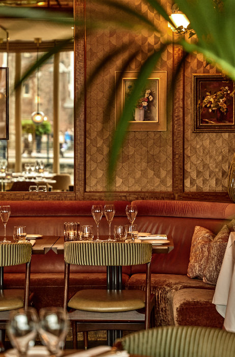 Deze cocktailbar is de nieuwste aanwinst van De L’Europe. Begin dit jaar is Chapter 1896 officieel geopend. Jansen: “Het interieur roept een huiskamergevoel op, waarbij de bar centraal staat.” Het concept van Chapter 1896 draait om specialiteitencocktails, geïnspireerd door de zeven vrije kunsten – grammatica, dialectica, retorica, aritmetica, geometria, musica en astronomia.