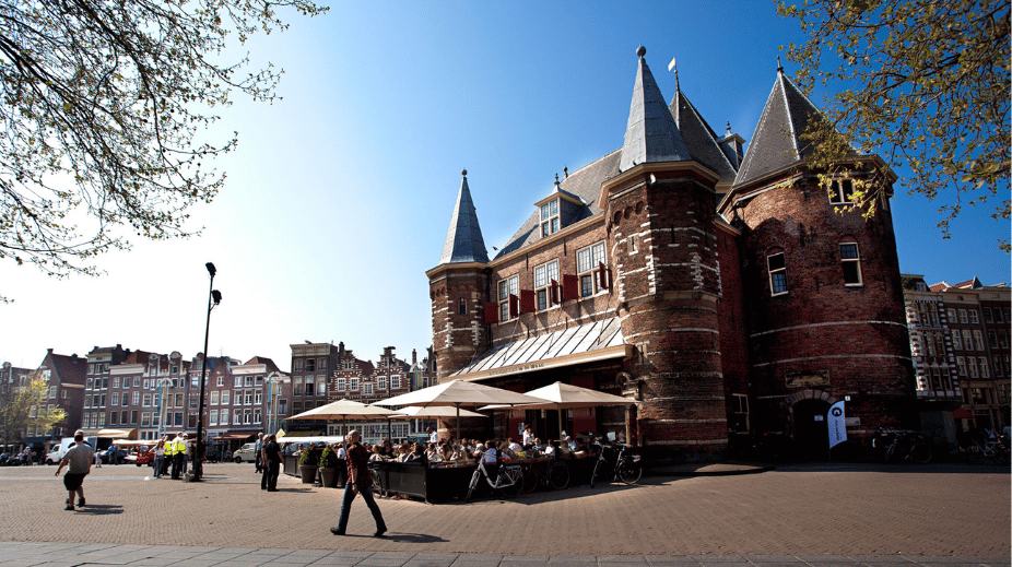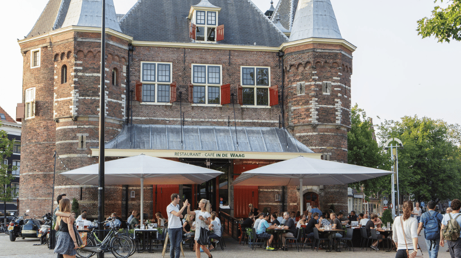Een klassiek grand-café, noemt mede-eigenaar Priscilla den Ouden In de Waag in Amsterdam. De zaak op de levendige Nieuwmarkt huist in een sprookjesachtig monument uit de vijftiende eeuw. Ook binnen heerst een bijzondere sfeer. “We draaien bijvoorbeeld geen muziek; je hoort hier alleen het geluid van de horeca. En de zaak wordt verlicht door 300 kaarsen,” vertelt Den Ouden.