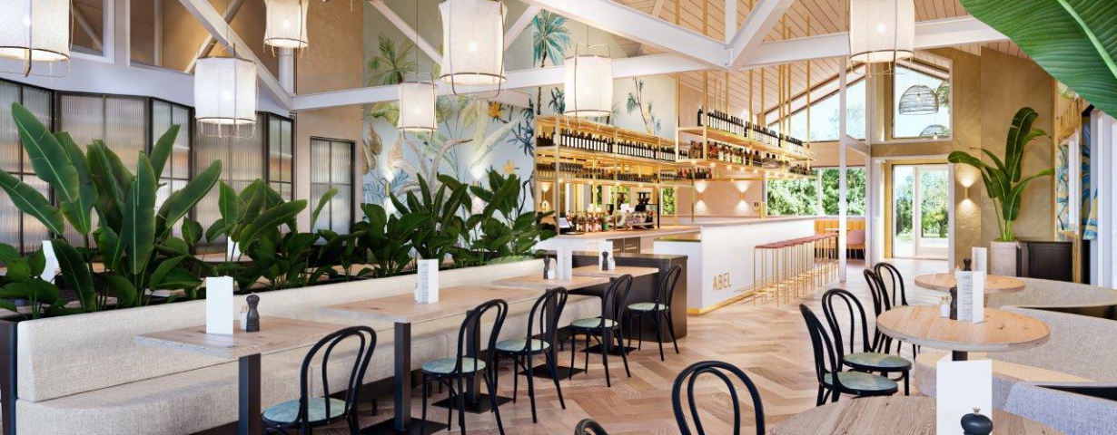 Sigrid Abel ontwierp het nieuwe interieur samen met het Haagse architectenbureau De Horeca Fabriek, die ook het interieur deed voor onder andere restaurant Goud in Rotterdam van Herman den Blijker. Licht, ingetogen chique en met natuurtinten zowel buiten als binnen, dat is wat het archiectenbureau met het interieur willen overbrengen.
