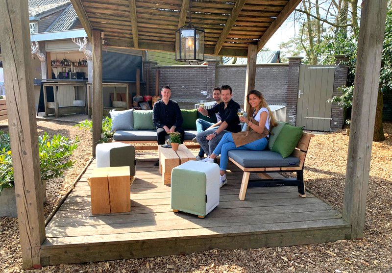 “Bij Tijn Akersloot hebben we op zijn aanraden bijvoorbeeld voor bontere kleuren gekozen dan we in gedachten hadden. Mijn partner Lodewijk wilde eigenlijk alles liever in één kleurstelling houden. Nu zijn we blij dat het advies van Marnix hebben opgevolgd. Ik vind het mooi dat hij vasthoudt vast aan zijn creatieve ideeën, ook als die schuren met je visie of budget als ondernemer. Daarmee halen we het beste in elkaar naar boven. Ik zie onze terrassen als levende projecten, waaraan je continu moet sleutelen. En ik zie Big Pillows daarin als langer termijnpartner.”