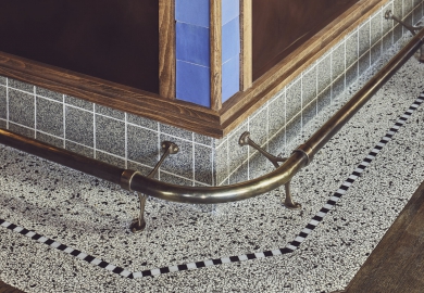 Het interieur van Arie is dan ook een ode aan die bruine kroegsfeer, maar met moderne elementen. Studio Modijefsky gebruikte, naast houten schrootjes, populaire materialen uit de hoogtijdagen van bruine cafés. De Nederlandse terrazovloer en brass voetsteun rond de bar zijn herkenbare, klassieke kroegelementen, net als de donkere, beukenhouten schrootjes die in het complete interieur van Arie Op de Hoek terugkomen.