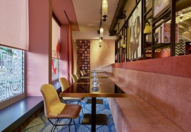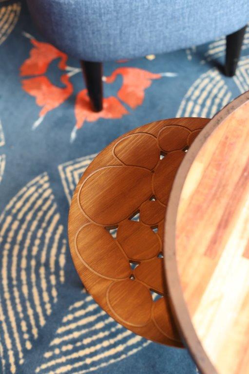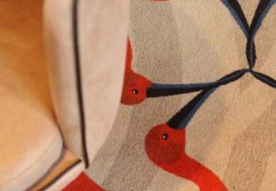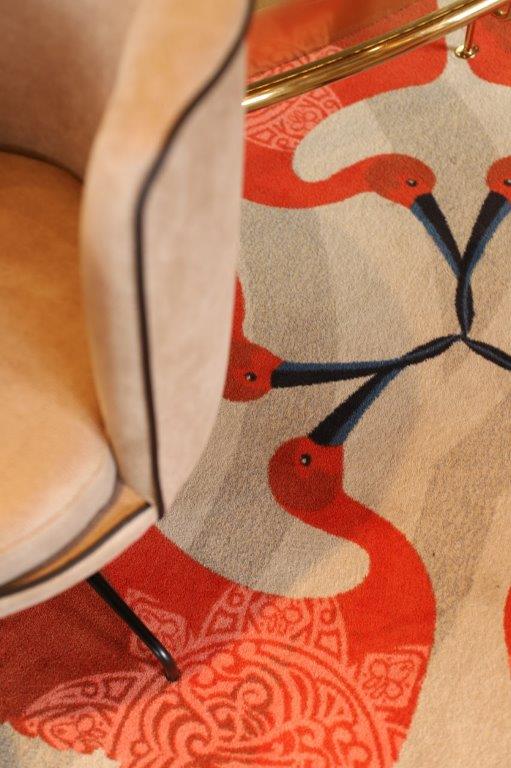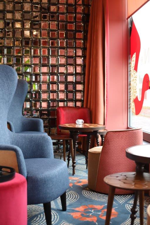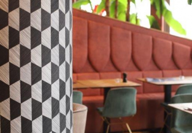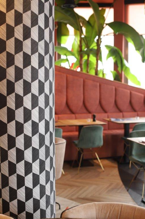 Onder andere de vloerbedekking heeft het bedrijf van Akkermans zelf ontworpen. "Het meeste behang heeft daarnaast een geweven structuur. Dat geeft diepte en warmte. Er worden tegenwoordig te veel prints gebruikt om te decoreren, vinden wij. We gebruiken onze dessins en achtergronden, maar ook het behang vaak in de uitingen naar buiten waardoor we snel herkenbaar zijn. Ook keken we of het Instagram-waardig is door het toevoegen van sterk grafische elementen, ronde vormen en goede verlichting."