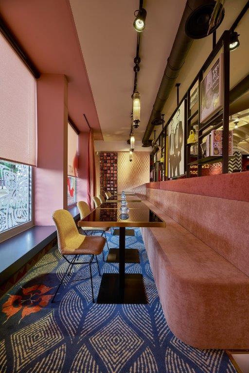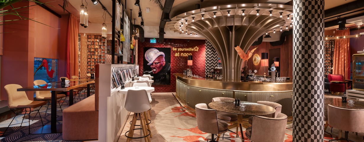 En zo geschiedde. Over het interieur zegt hij: "Duurzaamheid heet in de horeca vaak hufter-proof en er was lange tijd een hang en drang naar een industriële interieurs met een urban uitstraling. Wij wilden graag duurzaamheid vertalen naar een interieur dat hedendaags is en globaal, spannend en comfortabel voelt, maar wat door gebruik van goed gemaakte mooie materialen en bijvoorbeeld door gebruik van stoffen die niet snel verkleuren gewoon lang mee kunnen."