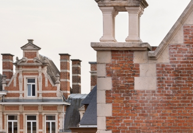 De kleuren van het interieur verwijzen naar de originele elementen, met het zachte groene hout, de donkere gerookte eik of het zwart en wit dat het contrast benadrukt tussen modern (zwart) enklassiek (wit). Dit concept werd bewust toegepast doorheen het hele project en laat ook het nieuwe publiek in aanraking komen met de klassieke achtergrond. De zorgvuldig gerestaureerde moulures, deuren en handgeschilderde tegels eisen samen met het witte marmer in de kapel de hoofdrol op binnen de klassieke interieurs, terwijl de zwarte elementen naar het nu verwijzen, een contrast waarmee het moderne leven dit project voorzichtig binnensluipt.