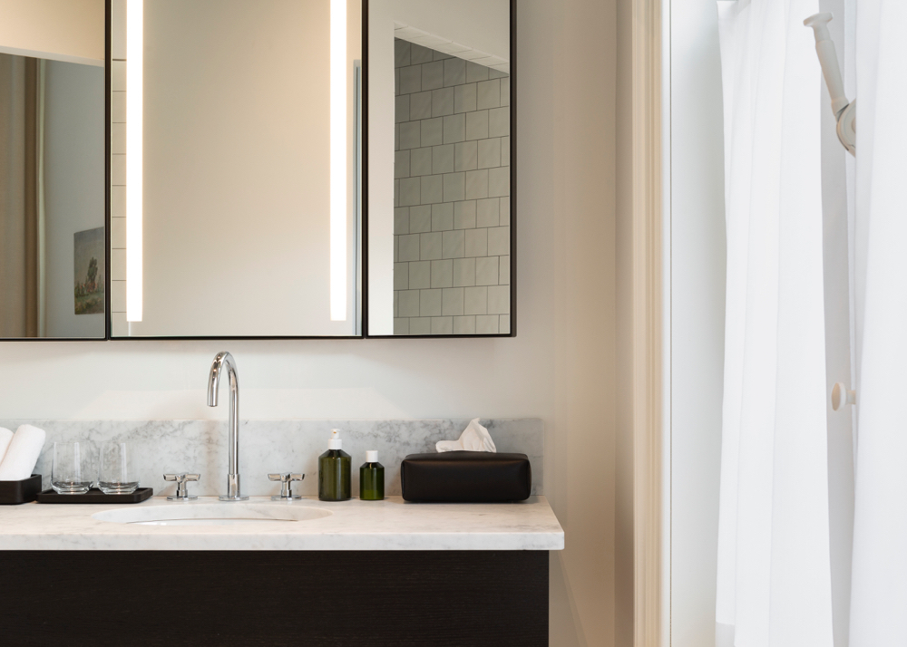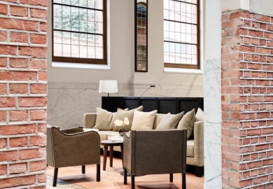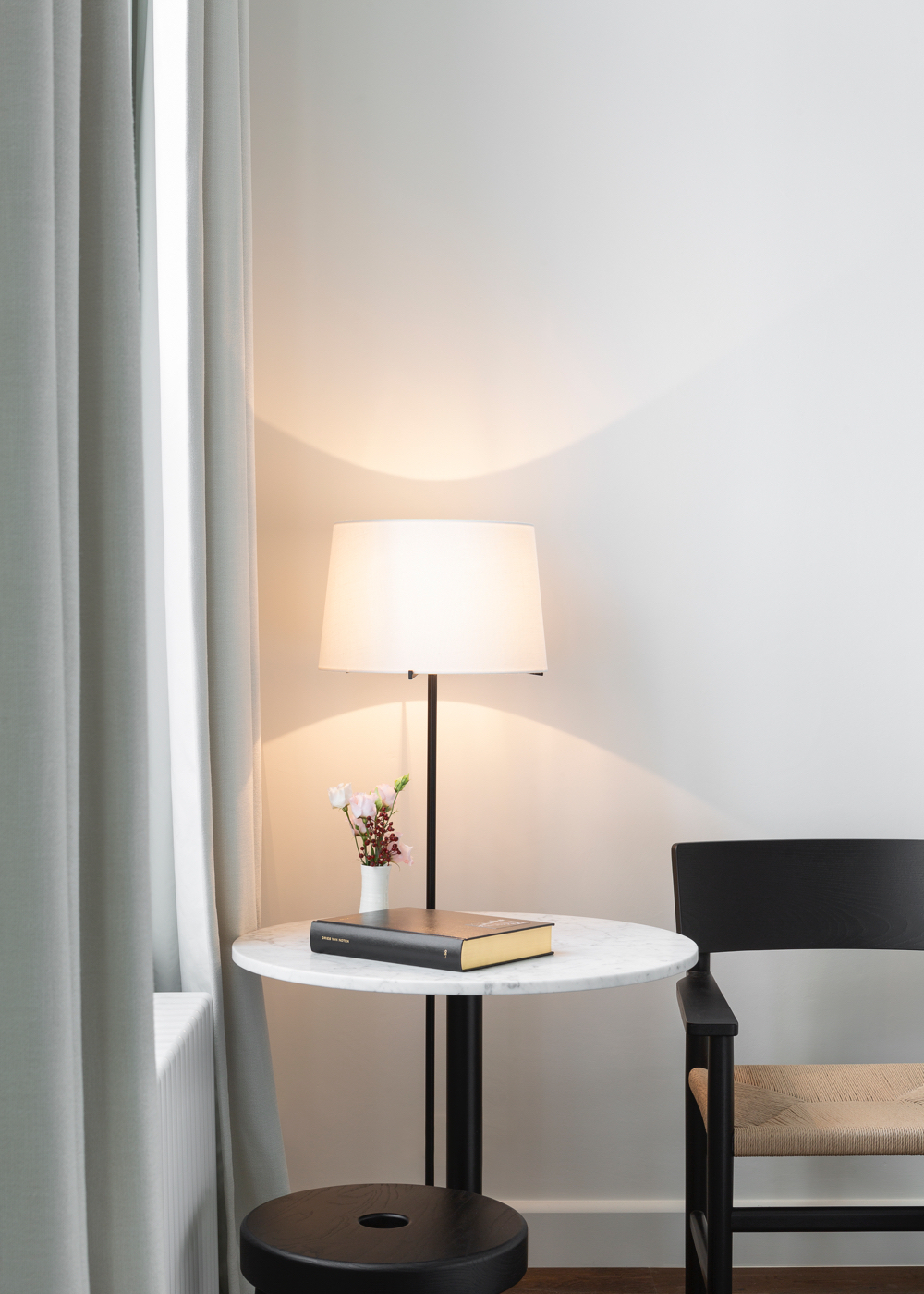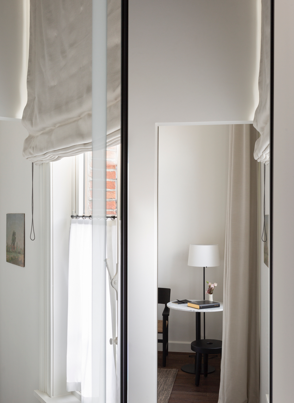 Het interieur is opgevat als een warm en tijdloos eerbetoon aan het kloosterleven. Bij elke stap die je zet, treed je in contact met een zorgvuldig uitgedachte esthetiek. Elk element is zo ontworpen dat het perfect opgaat in het authentieke erfgoed met zijn moderne toetsen. De complexe patronen van de originele tegelvloeren werden gerestaureerd en teruggeplaatst, als getuigen van een nieuwe, glorieuze setting. Door de enorme ramen stroomt een overvloed aan natuurlijk licht naar binnen, wat een prachtig contrast vormt met het gesloten karakter van de voormalige functie. Zo goed als alles wat je ziet in het interieur van August werd op maat ontworpen door Vincent Van Duysen, en gemaakt in samenwerking met onder andere Molteni, Flos en Serax.