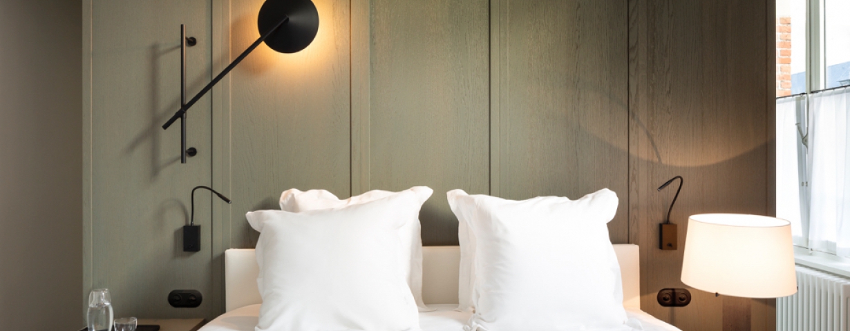 Het voormalige klooster telt 44 kamers en suites, tussen 16 en 41 vierkante meter groot. De kamers vormen een warm eerbetoon aan het kloosterleven, met alle moderne voorzieningen als onmisbaar extraatje. In de en-suitebadkamer met inloopdouche (en sommige met vrijstaand bad) vind je producten van Bamford. Door de oorspronkelijke structuur van het gebouw heeft elke kamer zijn eigen identiteit, met opvallende kenmerken zoals een eeuwenoud houten plafond, een uitnodigend balkonnetje met zicht op de site van het Militair Hospitaal of ramen die prachtig uitgeven op de kapel of binnentuin.