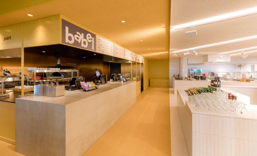 TANK, verantwoordelijk voor het interieurontwerp van Babel, maakte het interieur van het centrale gebied compleet wit. Dit zorgt ervoor dat je je echt in de keuken waant. De witte kleur dient als canvas voor het eten, drinken, de open keuken en de mensen. De centrale trap leidt de bezoeker langs een kastenwand vol mondiale kruiden en etenswaren direct in het hart van de witte zone. Vanuit dit centrale punt, liet TANK transparante ribben over het plafond over de ruimte uitwaaieren die de verschillende zones met elkaar verbinden. In alle talen die in Amsterdam gesproken worden is ‘Leuk je te ontmoeten. Wat brengt je hier?’ op de ribben te lezen. Zo verbinden ze niet alleen de verschillende zones, maar ook de bezoekers met elkaar.