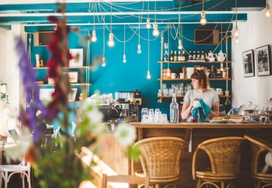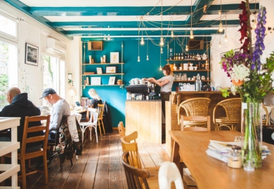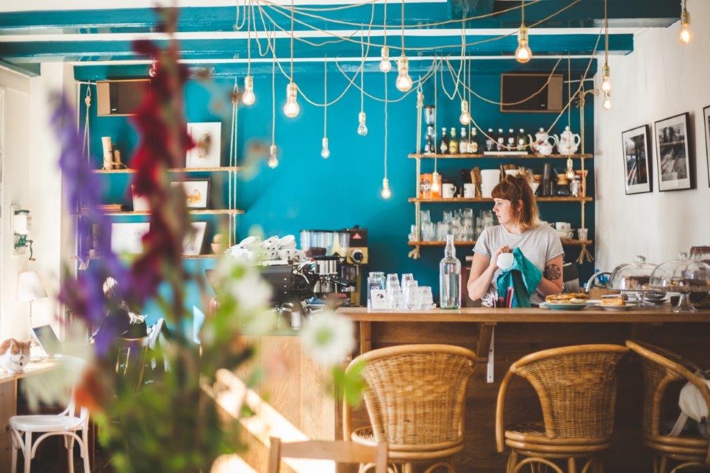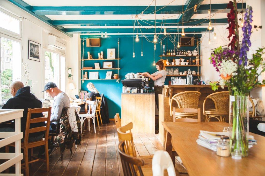 "Bij ons vind je gepassioneerde barista’s, zelfgebrande koffie, taarten uit eigen oven en een knusse huiskamer waar buurtbewoners aanschuiven om bij te praten of rustig een krantje te lezen. Aan de muur hangen steeds wisselende exposities van jonge kunstenaars en we verkopen producten – van agenda’s tot broodplanken – van lokale ontwerpers", beginnen Vlutters en Bulthuis.