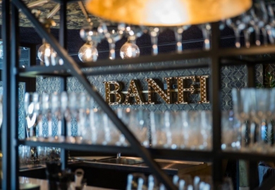 In Banfi is gekozen voor de kleur groen als basis. Door deze kleur én door het gebruik van veel staal en messnig krijgt het restaurant een stoere en een licht industriële uitstraling, maar is het niet te hoogdrempelig. Door het gebruik van rijke stoffen, krijgt het geheel bovendien een chic tintje.