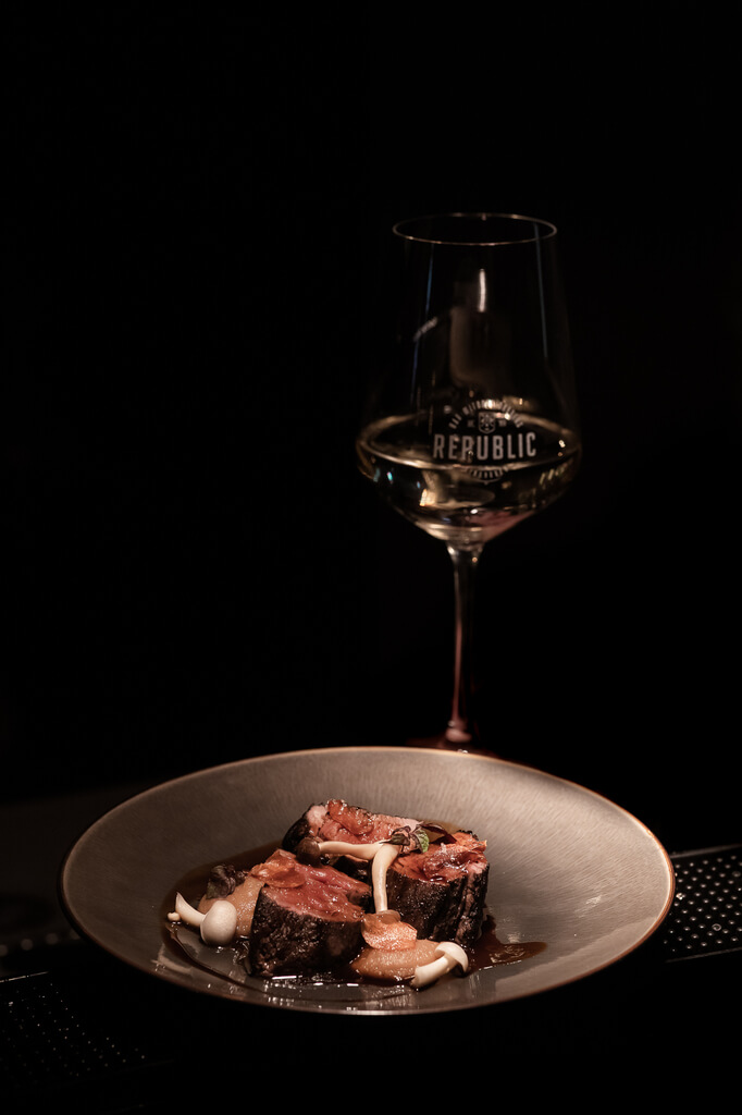 Bij Republic geen gangen of menu’s, maar onder het genot van een goede fles wijn of een mooie cocktail kan de gast lekker bestellen waar die zin in heeft. Op de kaart prijken gerechten van hoogwaardige kwaliteit die perfect zijn om te delen. Denk aan oesters met crème fraiche van kaviaar, scallop crudo, lamb chops, steak tartare en limoncello cheesecake.