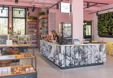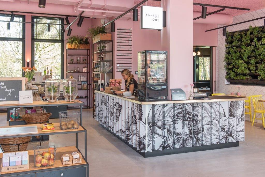 De twee f&b-outlets zijn, net als het hotel, 100% elektrisch. Het menu van Bar Kantoor en het naastgelegen kauwgomballenroze Conscious Café sluit daar volledig op aan en is compleet biologisch. Chef Dirk Mooren: “Daar zijn we trots op. Voor Bar Kantoor fermenteren en wecken we bijvoorbeeld veel seizoensproducten waardoor ze veel langer houdbaar zijn. Daarnaast geeft het natuurlijk een extra touch aan gerechten.”