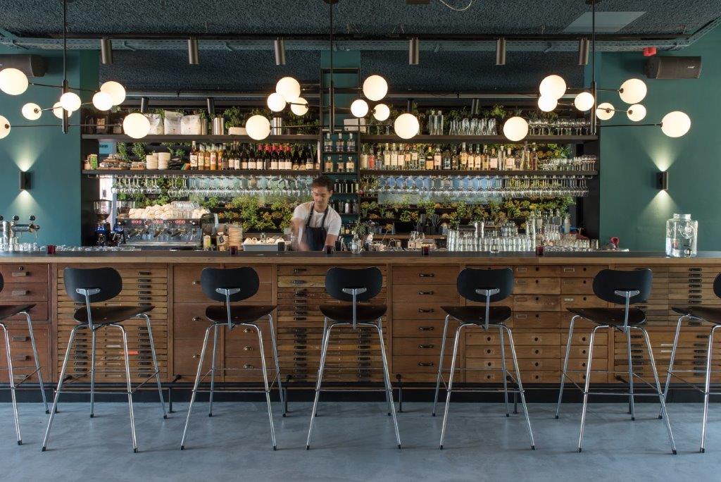 Het restaurant is de hele dag open voor ontbijt, lunch, diner. In de bar worden naast reguliere drankjes ook huisgemaakte kombucha en signature cocktails geserveerd. Zo mengt ‘De Ambtenaar’ kimchi, wortel, kurkuma en wodka. Ook klassieke cocktails steekt Bar Kantoor in een nieuw pak. Conscious Café, een winkel met 100% biologische producten en tevens de lobby van het hotel, is ten slotte een ´Sexy Grab & Go’: gasten kunnen er hun kleine trek te stillen.