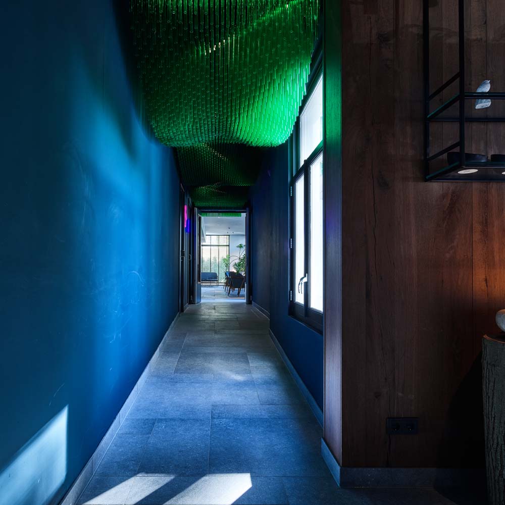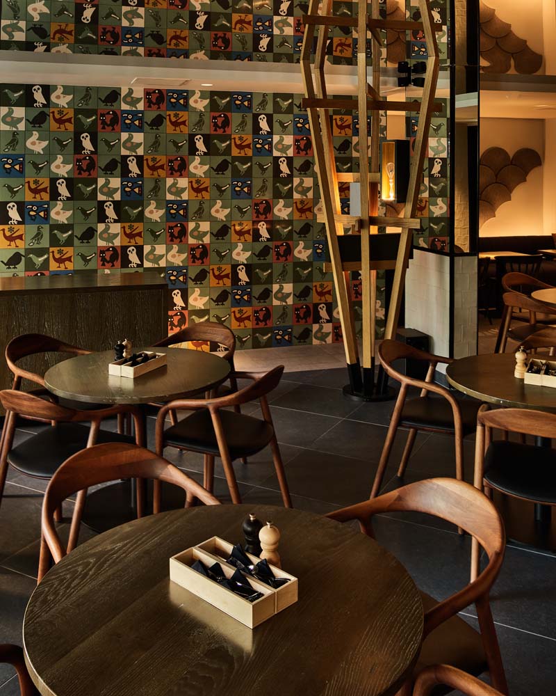 In een design van H-Hospitality, haalt The Birdhouse ‘t buitenleven naar binnen. De elementen water, lucht en aarde vormen de basis van een design dat woekert van botanische invloeden, organische vormen en rijke kleurpaletten. Het strak gestylde oerwoud van The Birdhouse is opgesplitst in twee delen die verbonden zijn door een lange gang. Daar knipoogt de golvende, zeegroene verlichting opnieuw naar de natuur. Voorin het restaurant ligt de gouden bar, groene vissenschubmuur en een bonte verzameling van hoge en lage zitjes. Het achterste gedeelte met uitzicht op de grootse binnentuin en ‘t bijzondere spiegelplafond met bamboepilaren is perfect voor grote groepen.
