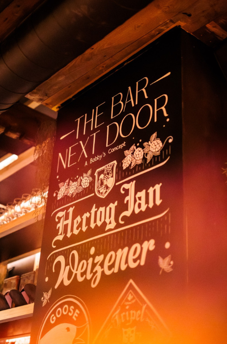 The Bar Next Door vervangt Bobby’s Boat, voorheen gevestigd op het historische schip De Spinola. Een deel van het team van Bobby’s Cocktailbar blijft betrokken bij de nieuwe locatie. Twee keer per jaar introduceert de bar een vernieuwde menukaart met signature cocktails. Er wordt uitsluitend gewerkt met A-merken om de kwaliteit te waarborgen.