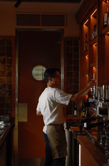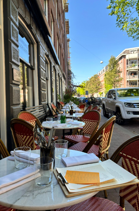 Het interieur van Boon & de Koot kreeg een warme en klassieke uitstraling. De combinatie van een tegelvloer, houten Thonetstoelen en retro verlichting zorgt voor een gezellig geheel. Warme kleuren domineren het interieur, en ook het terras nodigt uit: gasten kunnen buiten plaatsnemen op een van de gezellige zitjes.