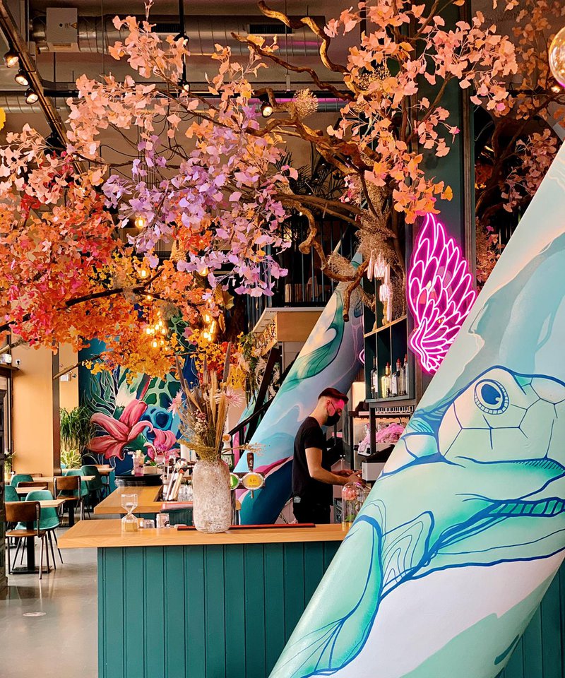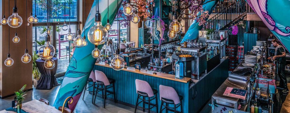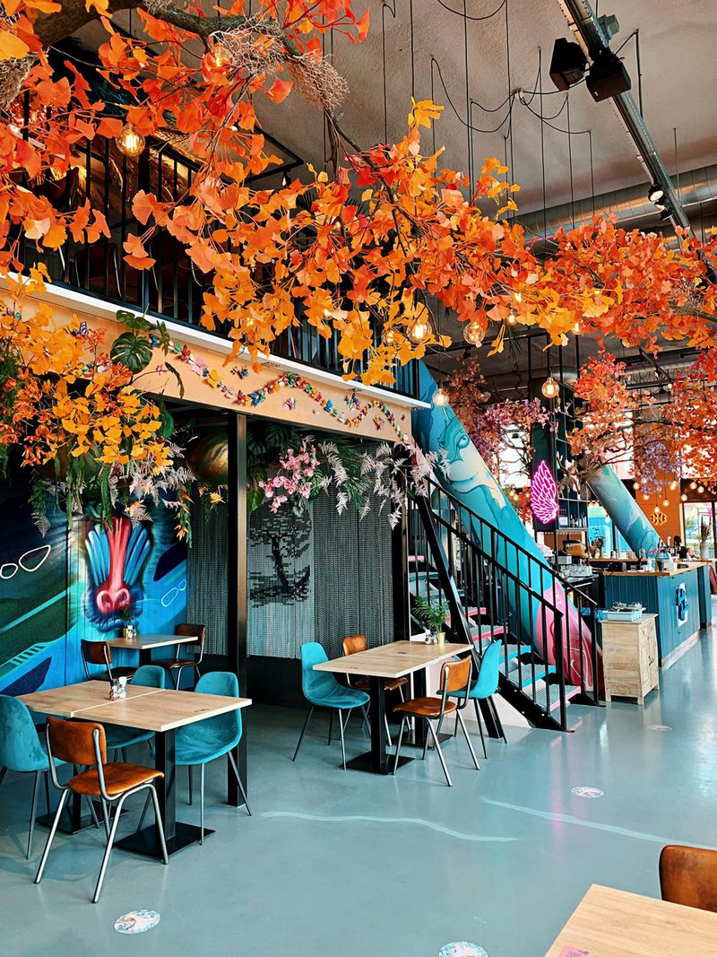 Een kleurrijk bos met echte boomstammen en gekleurde bladeren onder het zes meter hoge plafond, vleugels om de bar en bijzondere, nieuwe ledverlichting. Zodra BY AMI in Rotterdam de deuren weer mag openen, kunnen gasten hun ogen uitkijken. “We willen vernieuwend blijven”, zegt eigenaar Ahmed Baglari. “Ik heb inspiratie gehaald uit de film Avatar, die artificiële wereld wilde ik in de zaak ook creëren. Het geeft echt een ‘wow’-effect en is zeker Instagrammable. Precies wat gasten van ons verwachten.”