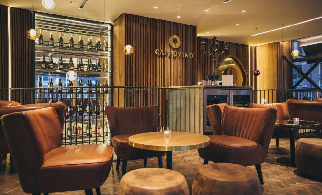 Eigenaren zijn Stefan en Hans Dreize en Wibo Eimers. “Cappuvino is een koffie- en wijnbar in één. We hebben gekozen voor een chique en elegante, maar tijdloze uitstraling”, aldus Stefan Dreize. Opvallend zijn de grote raampartijen over de gehele breedte van de gevel en het gebruik van veel leer, messing, natuursteen en hout in het interieur.