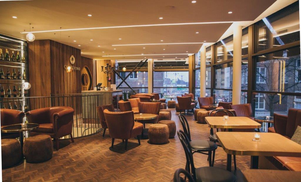 Hij vervolgt: “Hierdoor én door het draaien van jazzmuziek creëren we een elegante, maar toegankelijke sfeer. Op de eerste etage is de bar te vinden en staan halfhoge ‘window seats’ en een leren bank. Op de tweede etage bepalen juist de donkere houten vloer, de leren stoeltjes en lage tafels van natuursteen met donkere poefs de uitstraling. Op de derde verdieping is de keuken te vinden en hopelijk kunnen we er in de zomer een dakterras openen.”