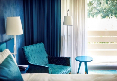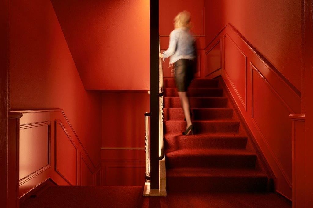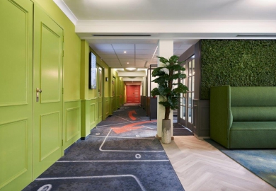 Designbureau E.S.T.I.D.A. is verantwoordelijk voor het nieuwe jasje. Mede-eigenaar Michel Ruijgrok: “In de kamers liggen nu tapijten met zowel botanische print als een schematische weergave van het metrostelsel van New York. Verder werkten we enerzijds met de natuurkleuren blauw, groen en geelgroen, en anderzijds met veel strakke lijnen, staal en grijs.” Ook in de zalen komt het contrast terug. “Daar is bijvoorbeeld als natuurlijk element geconserveerd mos op de muren en plafonds aangebracht, wat bovendien de akoestiek verbeterde. Verder komen in de gangen graffiti-achtige beelden en pijlen samen met botanische prints, zoals bladeren en paardenbloemen.” Later dit jaar worden ook de lobby en het restaurant gerenoveerd.