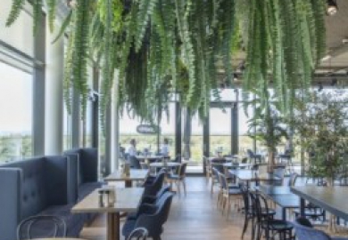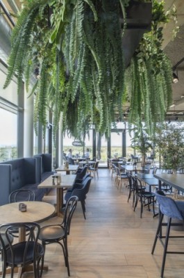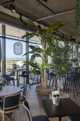 ESTIDA vertaalde de beleving van eten en drinken in verschillende courts met ieder hun eigen uitstraling. Zo is er een grote open keuken, een koffiebar, wijnbar, bierbar, cocktailstation en een oesterbar. Er is een lounge gecreëerd aan het raam met uitzicht op de duinen en de zee en een verhoogde lounge bij de openhaard zodat je over de gasten heen kijkt en het zicht naar buiten behoudt. Er is gewerkt met natuurlijke, luxe materialen, veel groene planten en een rustig kleurpalet die bijdragen aan een ontspannen sfeer. Dit restaurant leent zich uitermate goed voor een lunch die overgaat in een borrel. Een plek die je liever niet verlaat. En dat was nou precies de bedoeling.