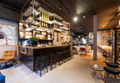 Door bovendien te kiezen voor ronde vormen, warme kleuren, strakke belijningen en rijke materialen heeft het Italiaans delicatesse-restaurant een unieke en warme sfeer gekregen. Het interieur is geïnspireerd op de horecabedrijven en het uitgaansleven van het Italië van nu, vervolgt Idzerda. "Het ondernemersechtpaar bezoekt vaak het geboorteland van Pietro om jonge lokale ondernemers te volgen en inspiratie op te doen."