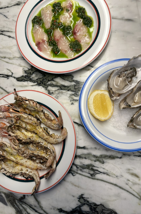 Bar Bellini doet zijn naam eer aan en serveert Bellini cocktails als aperitief. Dit is een Italiaanse cocktail van prosecco en perzikpuree die zijn oorsprong vindt in Venetië. Het menu van Bar Bellini is opgebouwd uit tien kleine gerechten die zowel geschikt zijn om te delen of in gangen geserveerd kunnen worden. Gerechten van het menu zijn bijvoorbeeld kwartel van de barbecue met geroosterde pepers en lardo of linguine met een saus van langoustine met kokkels.