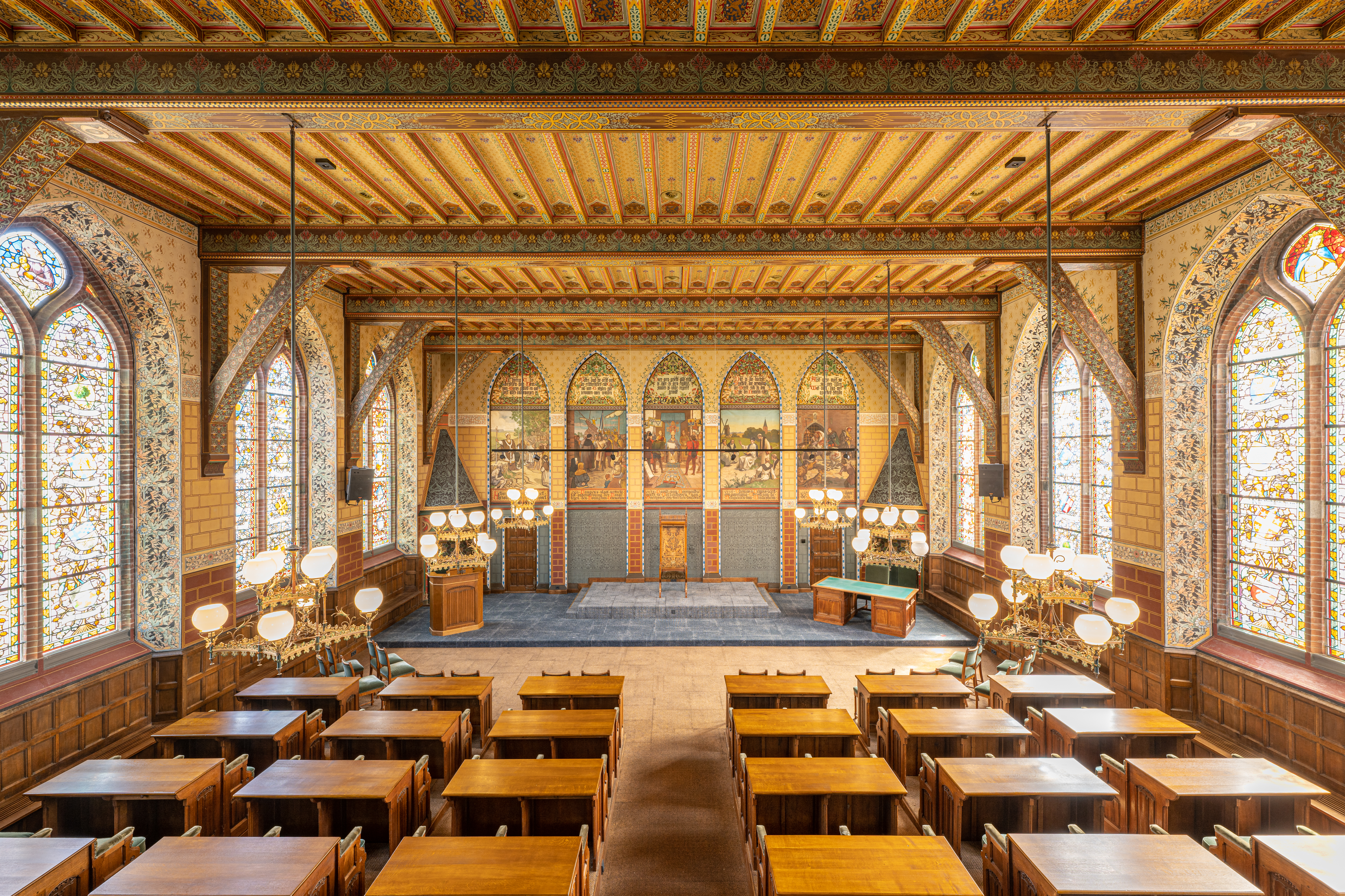 Door het hele pand vind je glas-in-loodramen en andere oude details. Het hotel heeft zeven kamers, waaronder de commissariskamer. Het grand café, dat een terras heeft in de binnentuin, zit in de oude leeszaal. Uniek is de Statenzaal, die nu wordt gebruikt wordt voor het organiseren van evenementen.