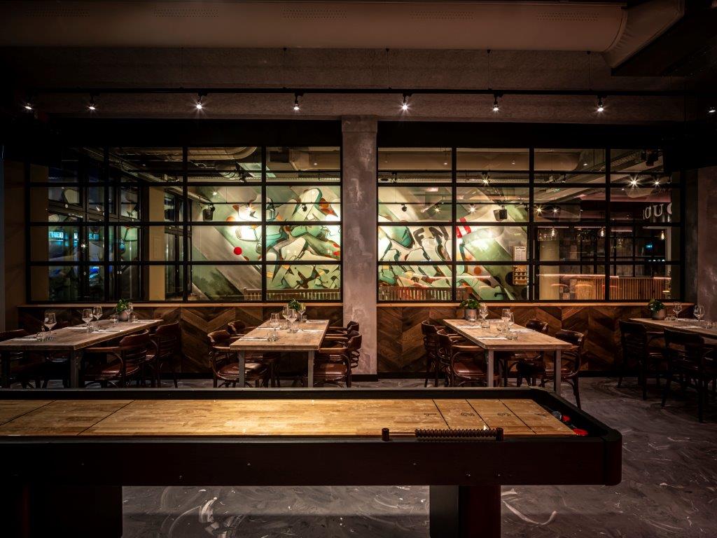 Fun en food dus. Naast een restaurant, bar en terras zijn er in De Vermaekerij acht bowlingbanen, twee indoor jeu-de-boules banen, drie shuffleboards, vintage Nozembikes en virtual reality escaperooms.