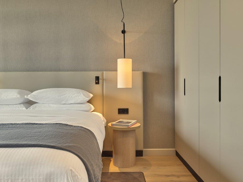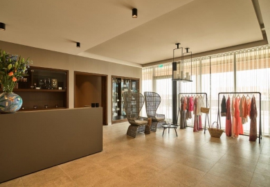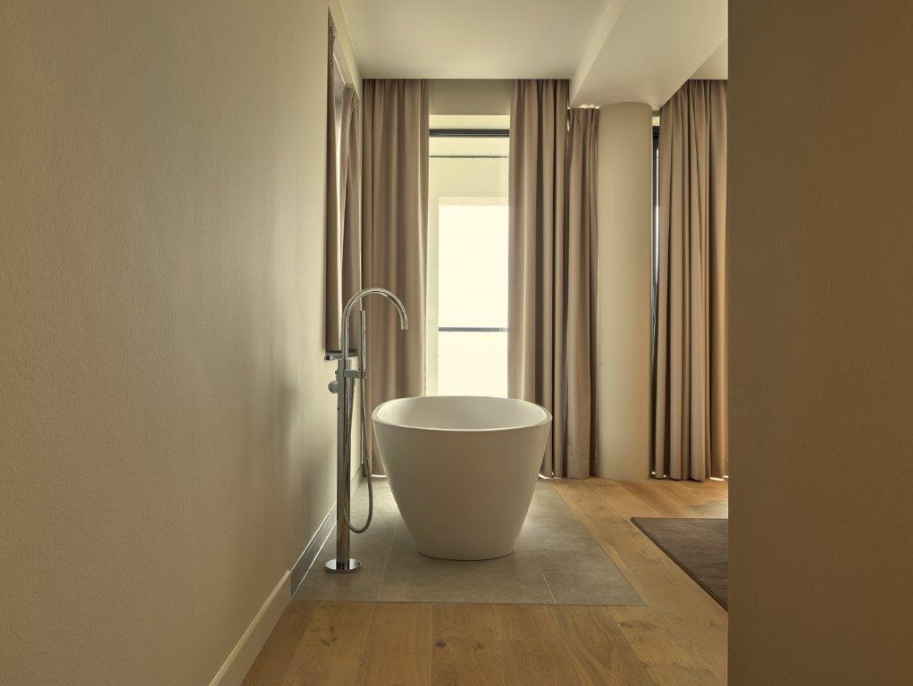 De Milliano schakelde Paul Linse van Studio Linse in voor het interieur. De ontwerper vertelt: “Het nieuwe interieur ademt een natuurlijke tijdloosheid en refereert op veel punten naar de unieke locatie. Zo staat de enorme kroonluchter in de entree voor luchtbellen in het zilte water en nemen gasten de monumentale zeeblauwe stalen trap naar de lobby. Verder staan lichte, rustige en elegante zandtonen centraal in de zeventig kamers en laten designelementen, zoals lampen en stoelen, de ruimte sprankelen zonder opdringerig te zijn. Ook leuk: in de brasserie en bar vind je echte Zeeuwse klederdrachtkapjes als kunstwerken aan de muur om de plaatselijke cultuur te eren Ingetogen luxe komt optimaal tot zijn recht in deze hernieuwde klassieker.”