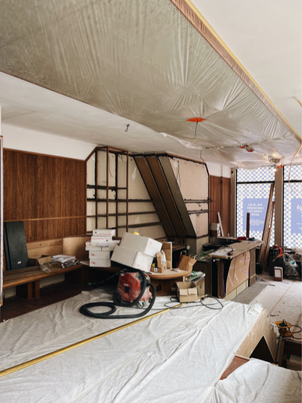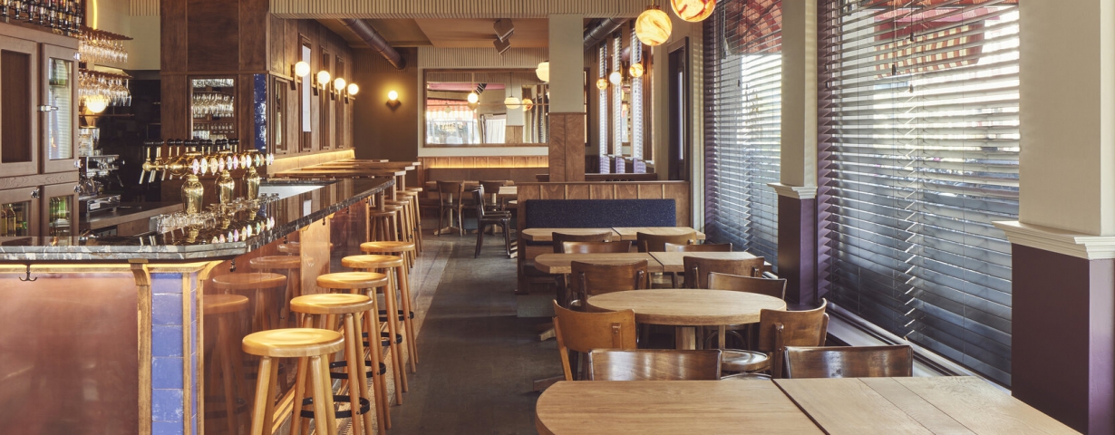 Studio Modijefsky is verantwoordelijk voor het design van het restaurant. Ze willen een een intieme, uitnodigende en lichte plek creëren door warme tinten en houten materialen te gebruiken. De handgemaakte meubels geven gehoor aan de functie als buurtcafé. Ook komen er diverse zitmogelijkheden. Zo zijn er bij binnenkomst hoge barzitplekken en vind je een verdieping hoger lage zitplekken. Op dit moment wordt er hard gewerkt aan de zaak.