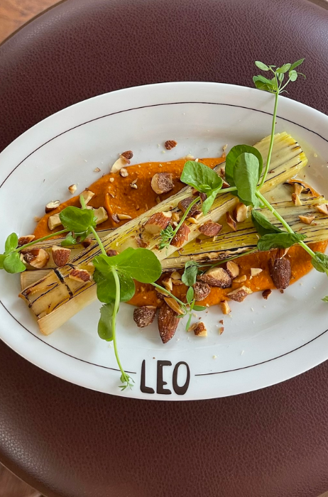 Leo opent in de ochtend, om de dag te starten met een kop koffie of een uitgebreide brunch. Op de lunchkaart staan verschillende sandwiches en lunchgerechten zoals burrata met watermeloen en steak tartare. Op de dinerkaart staan de bistro klassiekers van Fam. Goudvisch: de Biefstuk met jus, de Smash burger en het Boederijkippetje. Daarnaast zijn er andere gerechten die het nieuwe lid ‘eigen’ maakt.