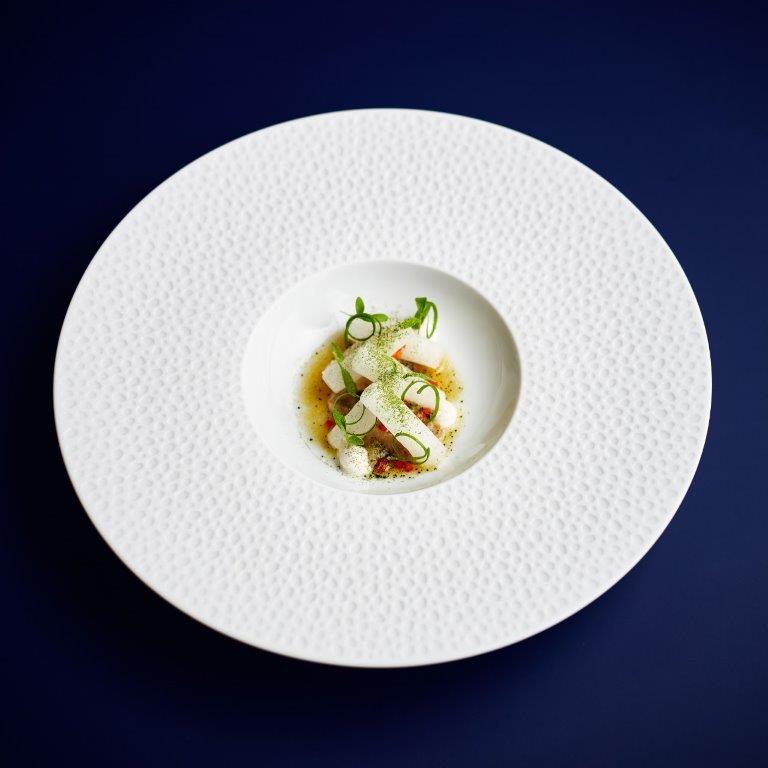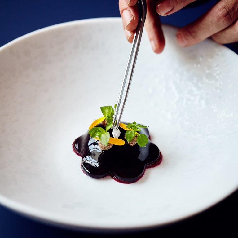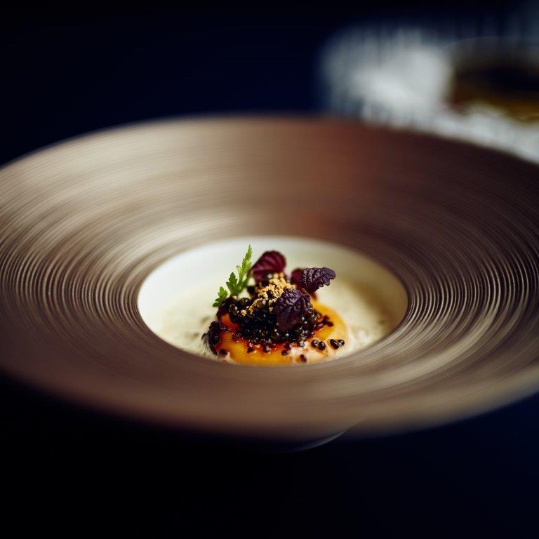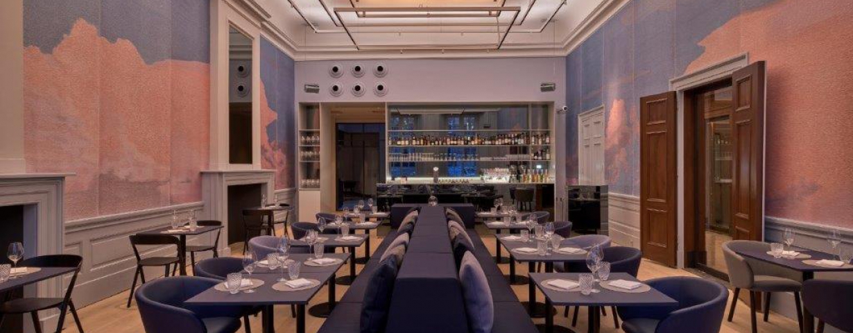 Het uitgesproken interieur is een moderne interpretatie van de zeventiende eeuw. Zo zijn de kroonluchters eigentijdse frames met verlichting. Opvallend zijn verder het hoge plafond en de muren, waar geen behang voor is gebruikt maar wandbespanning en waar de roze en blauwe pastelkleuren de zonsondergang weergeven. Het team bestaat uit sommelier Saskia Smeenk, maître Sander van Loenen Martine en chef Floris van Straalen.