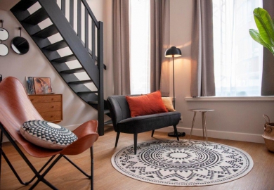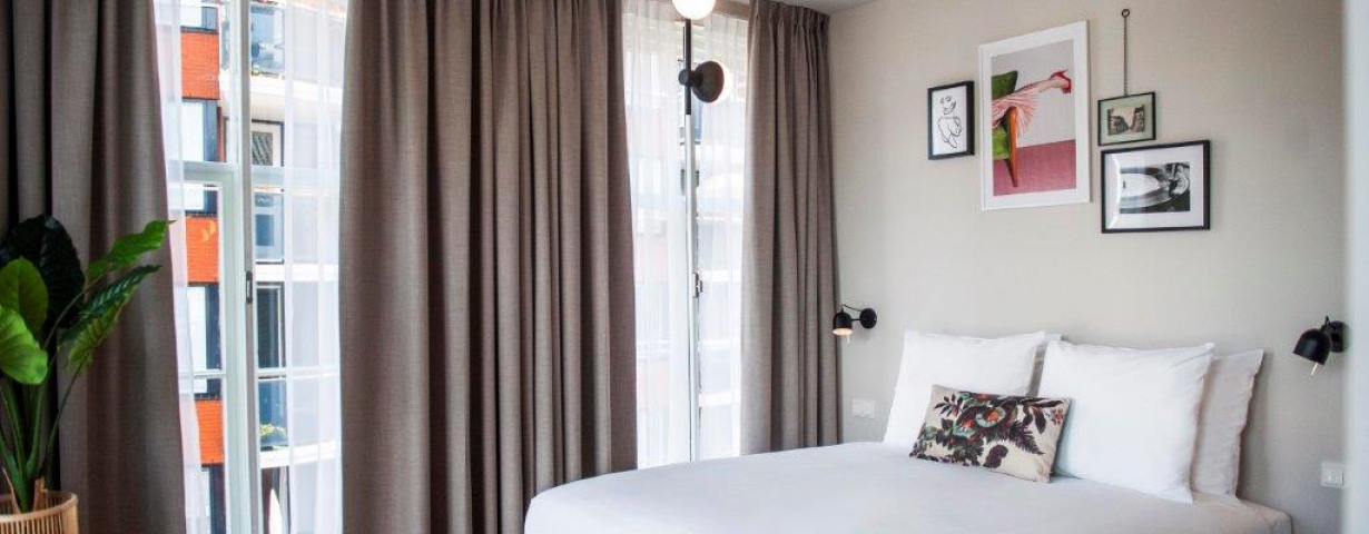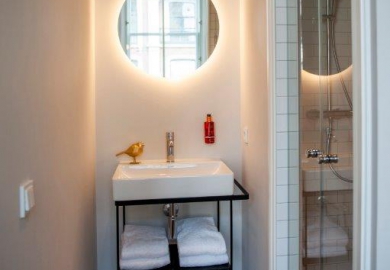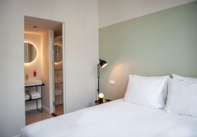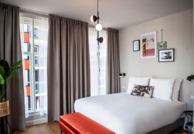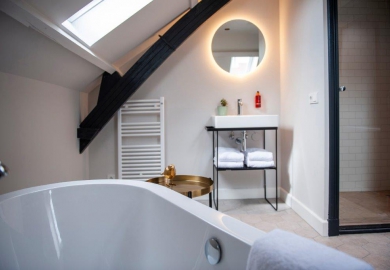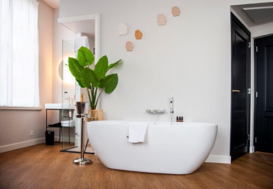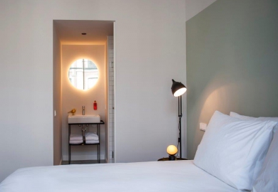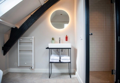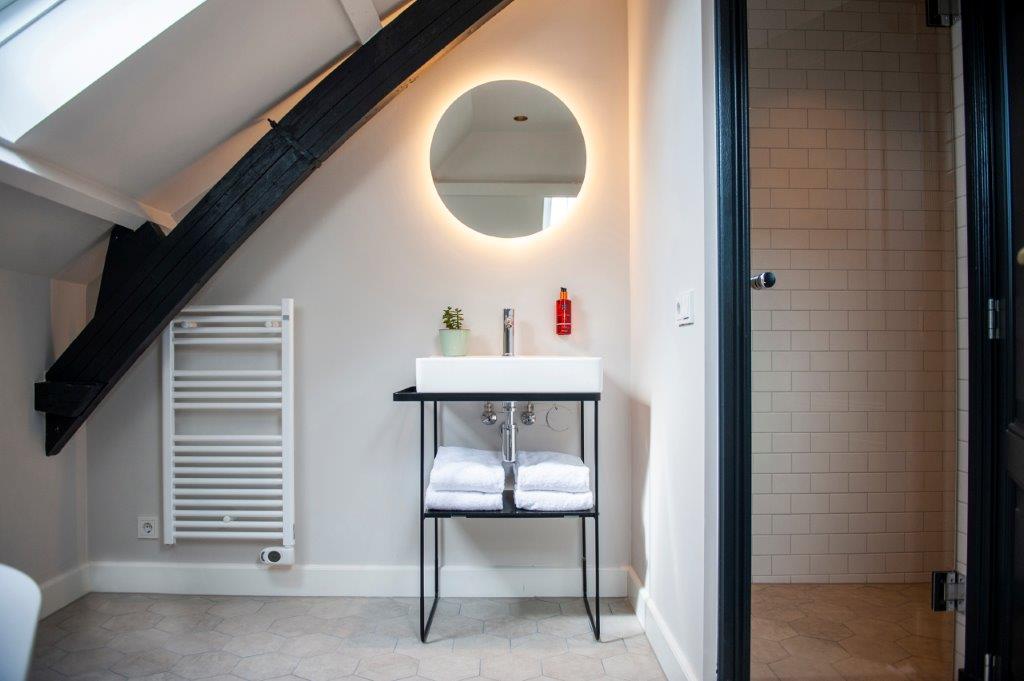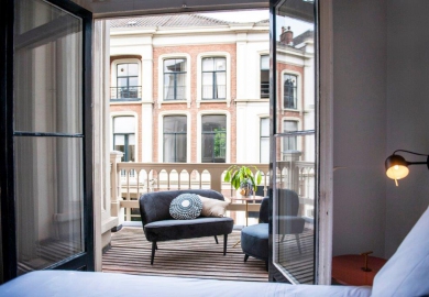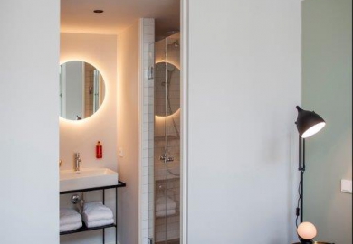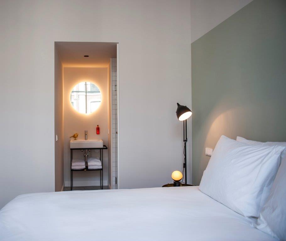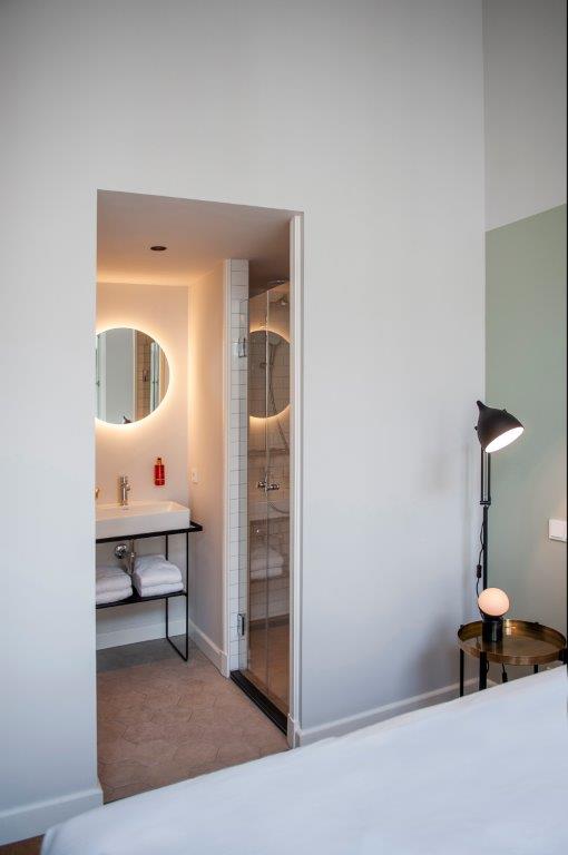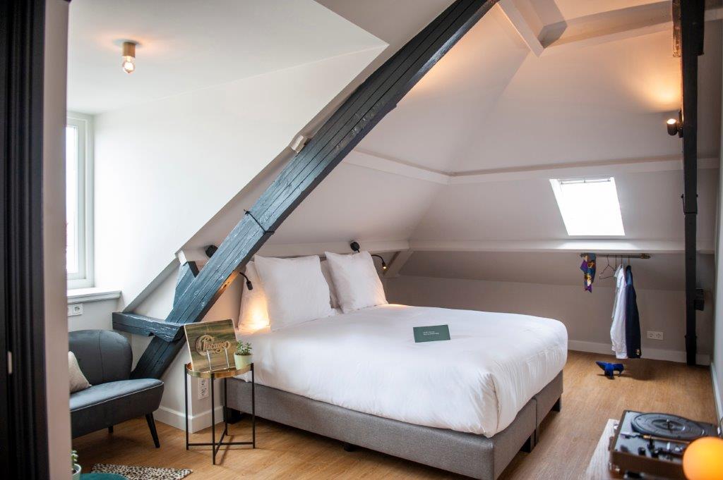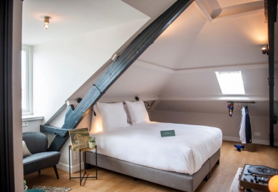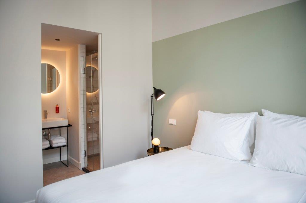 "De kamers zijn er in alle soorten en maten. Historische details, zoals grote ramen en originele balken, verraden de eigenaardigheden en geschiedenis van het pand. De kamers zitten propvol luxe zoals een über-comfortabel bed, airconditioning en een regendouche. Verder hebben onze kamers een open badkamer met een apart toilet, wel zo fijn als je met z’n tweeen bent. Ze zijn ontdaan van overbodigheden, maar wel met veel details en decoratie. Zoals een kekke platenspeler met een selectie vinylplaten. Zodat het minder een hotelkamer is en meer een thuis."