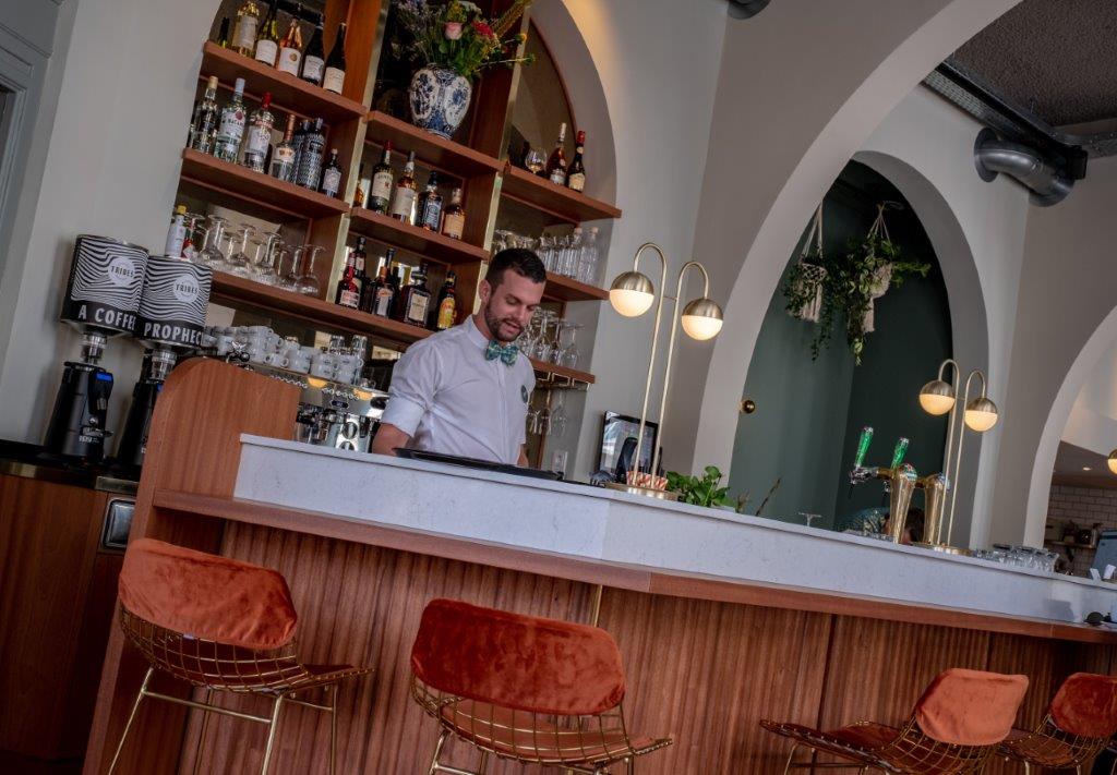 "The Bar is meer dan alleen een bar, meerr een huiskamer voor townsters en tripsters. Het kloppende hart van FINCH is licht, open en ingericht voor verschillende gelegenheden. Een grote gemeenschappelijke tafel om aan te werken. Comfortabele, doorleefde fauteuils om in weg te zakken. Een intiem hoekje en een gezellige bar om aan te socializen. Een plek om af te spreken of om bij te tanken. Dé plek voor laptop en latte. Én voor een borrel (of 2) na een lange dag. Ontbijt om 16:00 uur? Yes, you can. De hele dag is een bescheiden all-day (brunch)kaart beschikbaar."