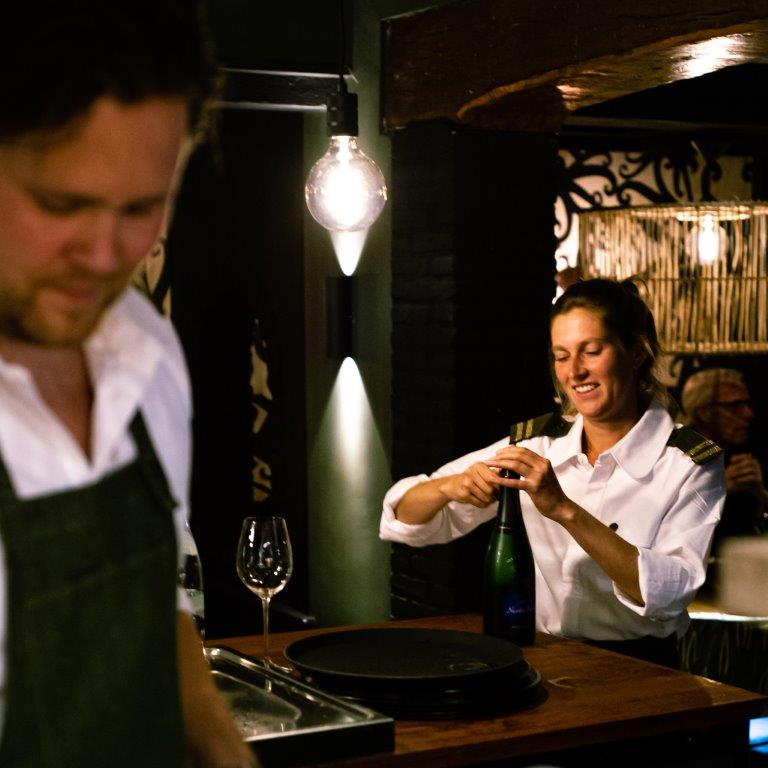 Het meest trots is Le Mair op de bar. "Deze eyecatcher is compact en staat op de plek van de oude binnentuin. En toch is er veel techniek en ruimte in verwerkt; heel werkbaar voor het personeel. Bijzonder is het wat grovere steen waarmee een deel van de bar is opgebouwd. Ook mooi: best wel wat interieurstukken van het restaurant in het gesloten Hudson’s Bay op het Rokin in Amsterdam zijn hergebruikt. We leven in andere tijden. De tijd van overconsumptie, trends die elkaar in hoog tempo opvolgen en kapitaalvernietiging is definitief voorbij. Fijn dat we daar een steentje aan bijdragen."