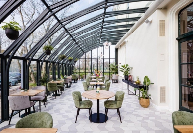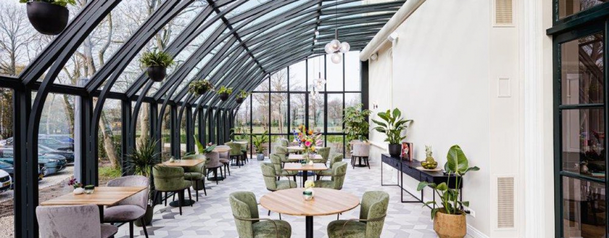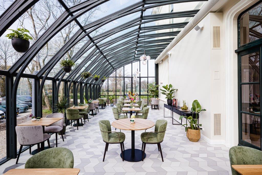 De hoge plafonds en de grote glazen serre in het restaurant creëren een gezellige en eigentijdse sfeer. Chef Otto Genz werkt er met regionale en seizoensgebonden ingrediënten.