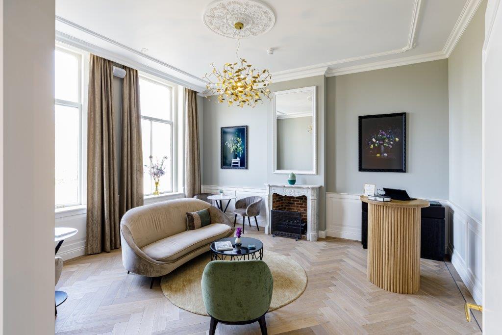 Sommige kamers in Flora Batava hebben originele balkenplafonds, ornamenten, openslaande deuren naar de tuin of een Frans balkon. Rustige kleuren en botanisch geïnspireerde kunst zorgen voor een moderne en elegante uitstraling.