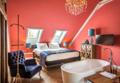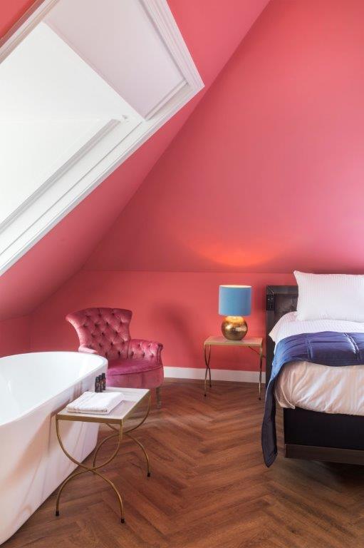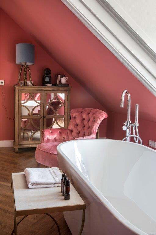Over het nieuwe hotelgedeelte zeggen ze: “Elke kamer heeft een andere inrichting en eigen kleur. De kamers zijn het beste te omschrijven als luxe, eigenzinnig en intiem, maar voelen allemaal wel toegankelijk aan voor onze gasten. Natuurlijk hebben we wel veel historische elementen in tact gelaten of juist extra benadrukt.” Het pand kent namelijk een rijke historie en deed eerder dienst als kantongerecht, gemeentehuis en belastingkantoor. Een van de bekendste eyecatchers van ‘t Gerecht is trouwens de plafondschildering in de plafondzaal. Deze komt uit de zeventiende eeuw en is geschilderd door een leerling van Rembrandt.