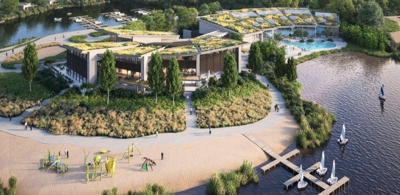 Het voelt alsof je op Ibiza zit, als je vanuit de azuurblauwe infinity pool uitkijkt over het meer. En dat terwijl je gewoon in het Belgische Limburg bent! De cocktails aan de poolbar, de strandtent, het wellnesscentrum en de picknickmanden brengen de gast direct in vakantiestemming. Center Parks richt zich met dit gloednieuwe park, prachtig gelegen naast de stuivende duinen en waterplassen van Nationaal Park Hoge Kempen, op een nieuwe doelgroep die wil genieten van de luxe van een eigen sauna met buitendouche en eigen aanlegsteiger. Maar ook gezinnen met kinderen komen hier aan hun trekken, in het geluidsarme subtropisch zwemparadijs met tientallen jaren oude bomen die zijn overgekomen uit Thailand en Cambodja. En dat Center Parks duurzaamheid hoog in het vaandel heeft blijkt wel uit het materiaalgebruik, een drijvend zonnepark en aandacht voor biodiversiteit.