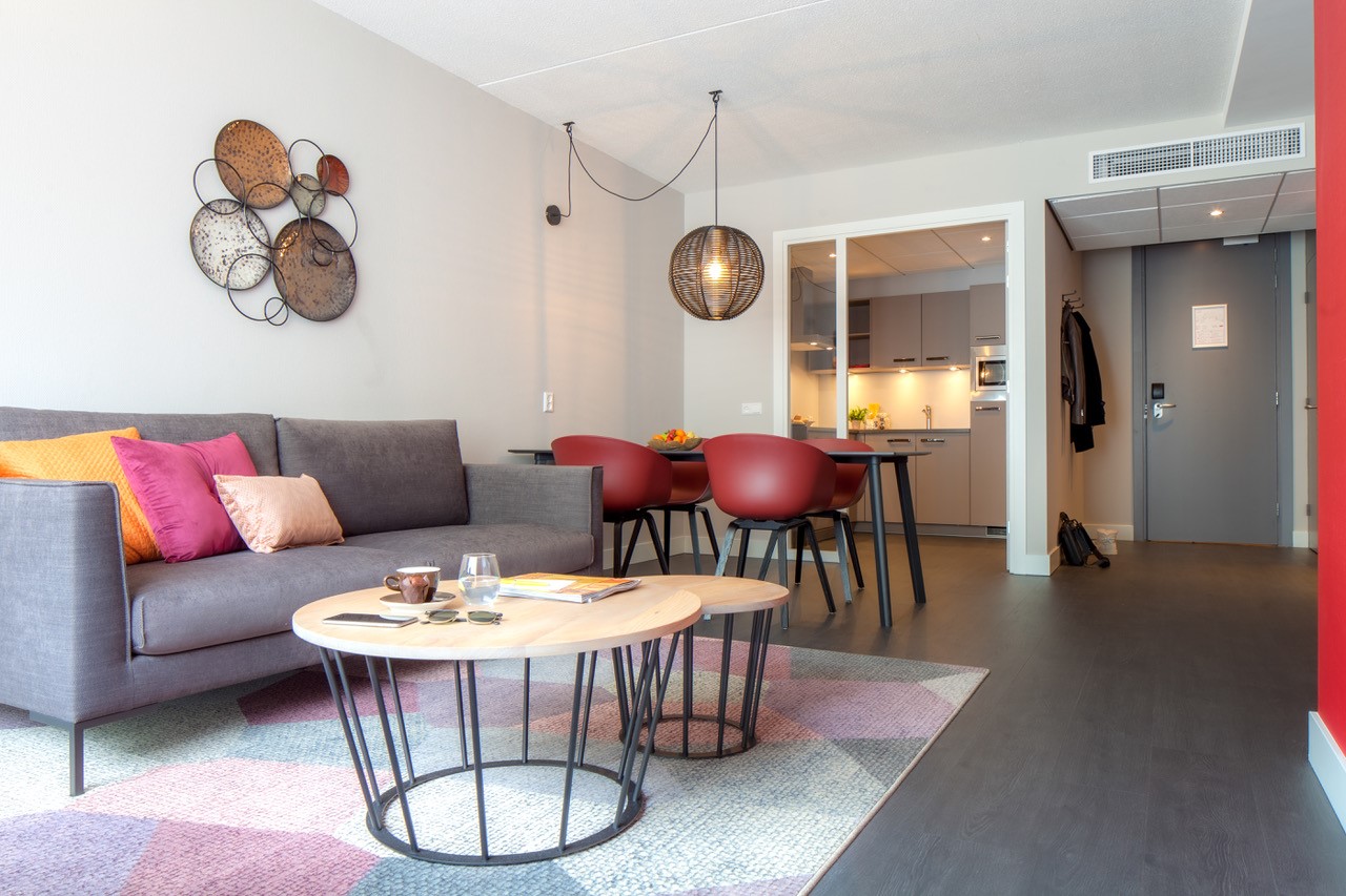 Ook de business suites van Golden Tulip Leiden en de ‘deluxe’ appartementen van Golden Tulip Zoetermeer zijn volledig gerenoveerd volgens het ontwerp van Buro Tiemwerk. Zowel in Leiden als in Zoetermeer is voor de vloer gekozen voor het gemak en de uitstraling van Allura pvc stroken. De moderne, niet van echt te onderscheiden visgraat vloer in Leiden geeft de business suites van het hotel de gewenste luxe uitstraling. De elf compleet ingerichte luxe appartementen in Zoetermeer zijn geschikt als familiekamer, maar worden ook vaak geboekt voor een ‘long stay’. Naast gebruik van de hotelfaciliteiten, bieden deze kamers extra ruimte en comfort. De donkere vloer past helemaal bij de stijlvolle inrichting en zorgt voor een huiselijke sfeer.
