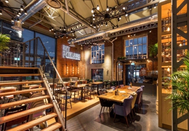 DEP is verantwoordelijk voor de verlichting en geluid. Eigenaar Sam Anders: "Naast de algemene verlichting zijn de kroonluchters en ook een groot aantal andere armaturen naar eigen ontwerp." HetKetelhuisTilburg.nl