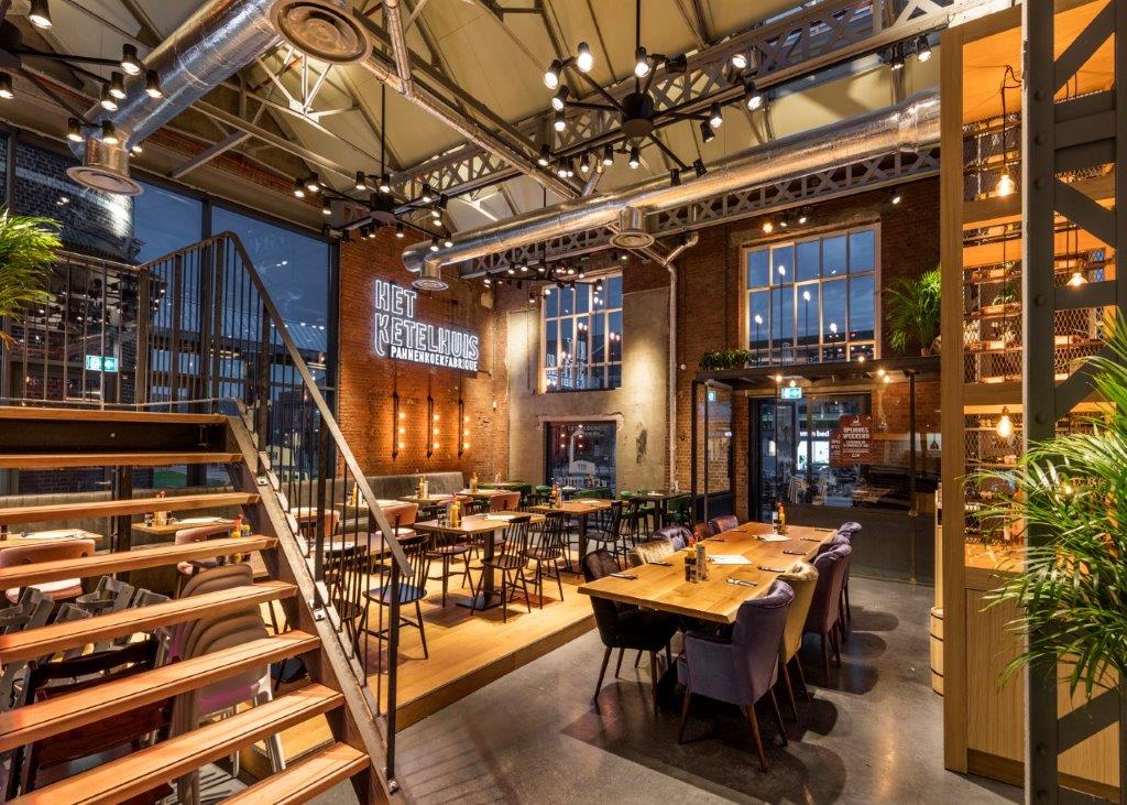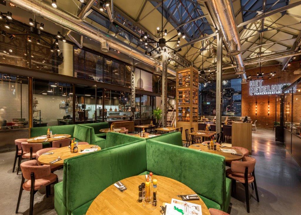 Ooit was in Het Ketelhuis in Tilburg de wollenstoffabriek AaBe gevestigd. Inmiddels zijn er veel woonwinkels in het pand te vinden én werd onlangs een deel van deze plek getransformeerd tot horecabedrijf Het Ketelhuis. Bekijk beelden van het moderne pannenkoekenrestaurant, dat wordt geëxploiteerd door Jaap van Ham, onder dit bericht.