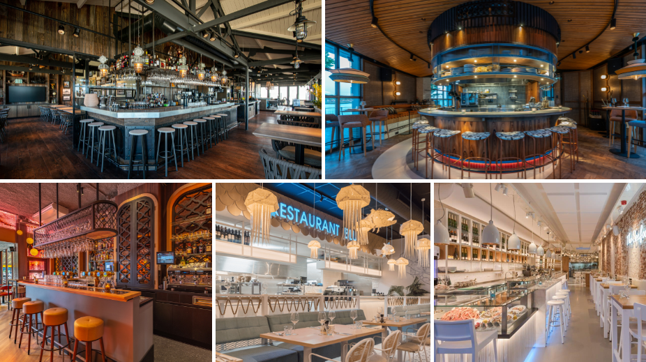 Restaurantgroep The Seafood Bar heeft vestigingen in Amsterdam, Utrecht en Londen. Typerend voor de interieurs is de frisse en lichte uitstraling met witte kleuren en natuurlijke materialen. Her en der vind je een vleugje blauw of een zeedier terug op de muur. De visdisplays maken het geheel bovendien helemaal af. Het interieur geeft volgens de familie Visscher (eigenaar van de zaak) goed de versheid van het vis weer.