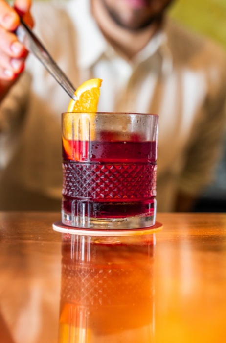 Tussen lunch en diner serveert Rosso een selectie traditionele Italiaanse aperitivo. Op de cocktailkaart staan klassiekers met een twist, zoals een spritz met Rinomato Bitter Scuro of een aged negroni, gerijpt in een amfoor voor een diepe, aardse smaak. Voor de cocktails wordt onder andere gewerkt met Mancino Vermouth en Rinomato Bitter Scuro. De wijnkaart bevat wijnen van relatief onbekende Italiaanse wijngaarden.