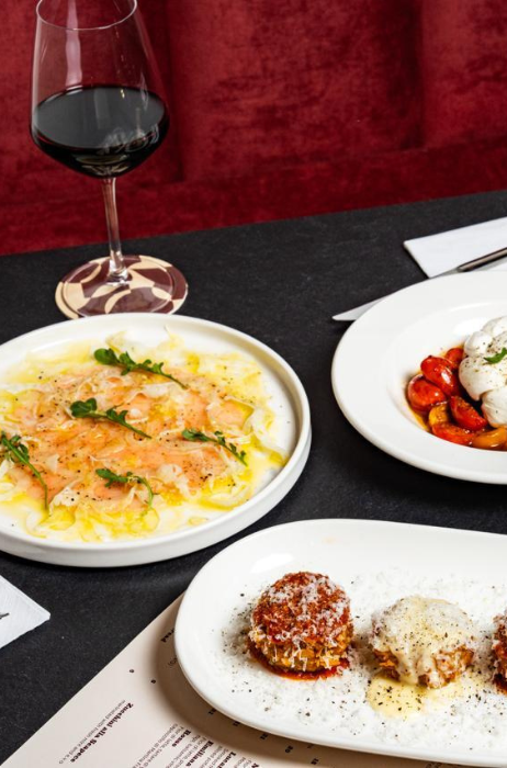 Op het menu staan bekende Italiaanse gerechten, aangevuld met pizza’s met verrassende toppings zoals nduja en szechuanpeper. Tijdens de lunch staat er ‘Pan Rosso’ op de kaart: het signature Italiaanse broodje. Een andere signature is de carpaccio of tartaar van gambero rosso di mazara, Siciliaanse rode garnalen, geserveerd met een verse kruidendressing. Het menu wisselt mee met het seizoen.